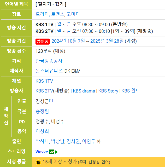 - 방송 기간: 2024년 10월 7일 ~ 2025년 3월 28일