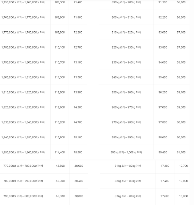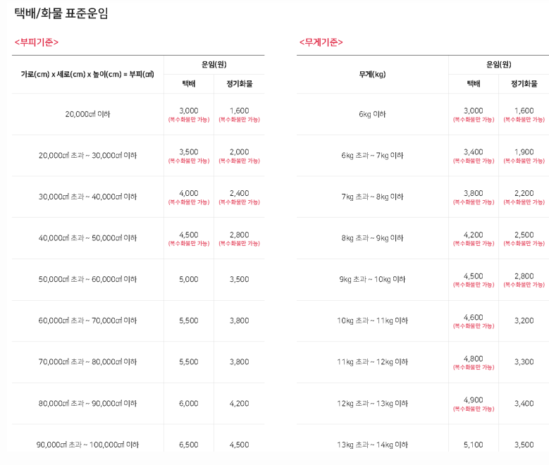 ✔ 무게와 거리별 요금이 다르므로 사전 조회 필수