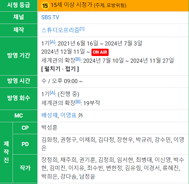 - 방송 시간: 매주 수요일 밤 9시