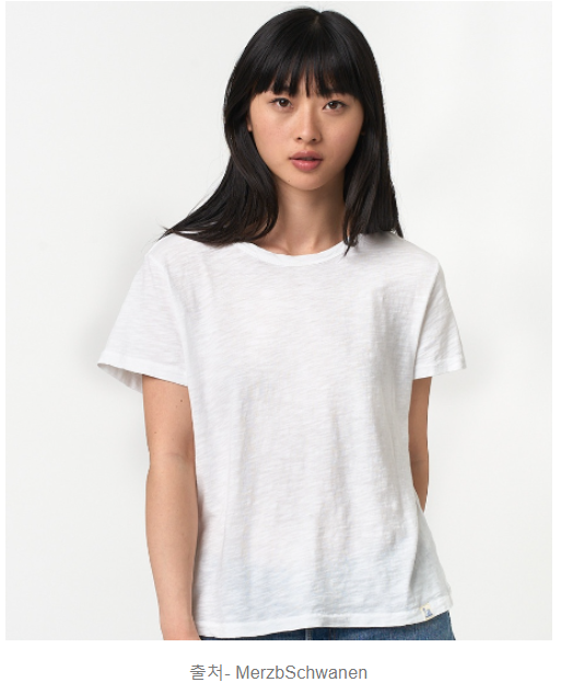 일반적인 티셔츠 원단과 달리, 메르츠비슈바넨은 오가닉 코튼을 사용해 피부에 자극이 없고, 착용할수록 자연스럽게 길들여지는 느낌을 준다.