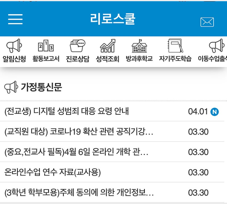 - 학교에서 전달하는 공지사항, 가정통신문 등을 앱을 통해 확인할 수 있습니다.