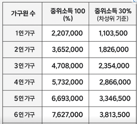 📊 중위소득별 기준표