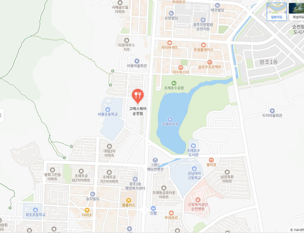 고메스퀘어 순천점은 전라남도 순천시 백강로 367, 성보빌딩 8층에 위치해 있습니다. 조례호수공원 맞은편에 있으며, 다이소와 투썸플레이스가 입점해 있는 건물이라 쉽게 찾을 수 있습니다.