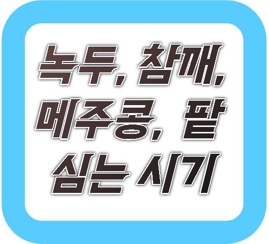 | 팥 | 5월 말 ~ 6월 초 | 9월 중순 ~ 10월 | 찰팥/적팥 약간 차이 있음 |