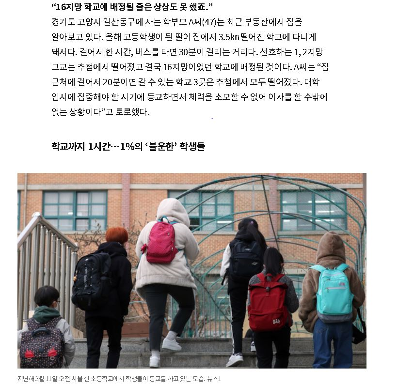 지망을 잘못 쓰면 통학 불편한 학교에 배정될 수도 있다는 사실!