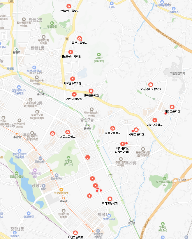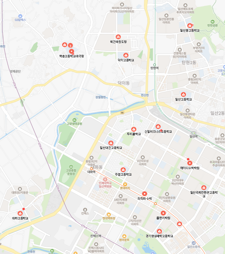 | 백석고 | ⭐⭐⭐⭐☆ | 안정적 내신 + 좋은 진학 성과, 정발산 학원가와 인접 |