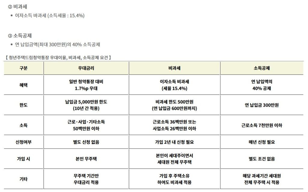 - 금리 혜택 + 청약 가점 우대 + 소득공제 지원