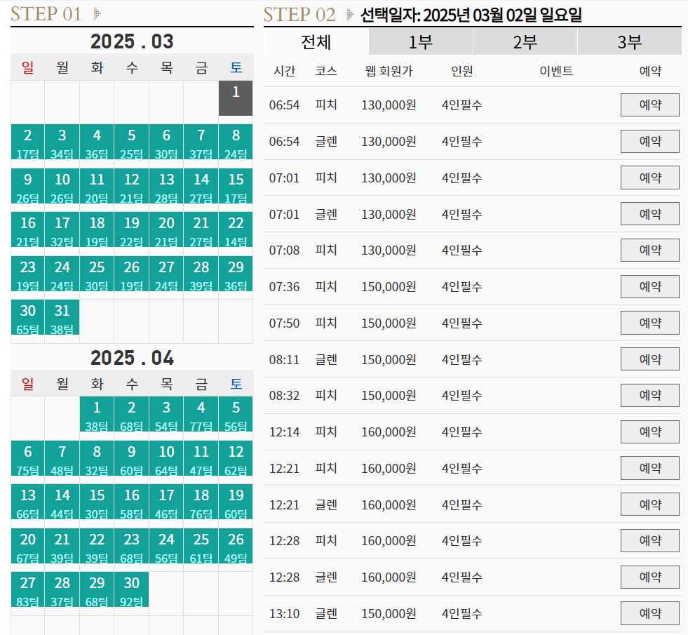 해당날짜를 클릭하면 요금이 조회되고 오른쪽 예약을 누르시면 됩니다.