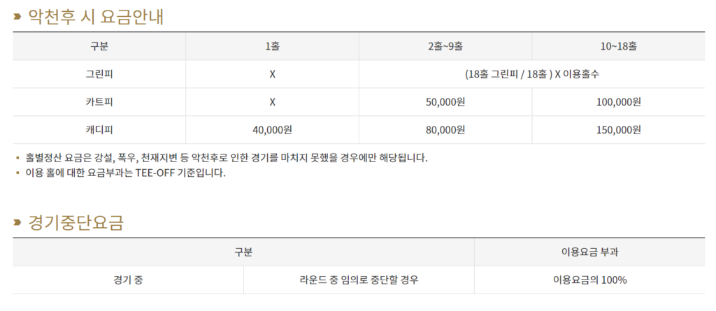 - 7번 홀(파3): 대형 호수와 비치 벙커가 있는 내리막 홀로, 거리 조절이 필수적입니다.