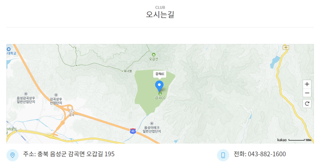 감곡CC의 위치 및 교통편, 주차 시설 등에 대한 정보를 제공합니다.