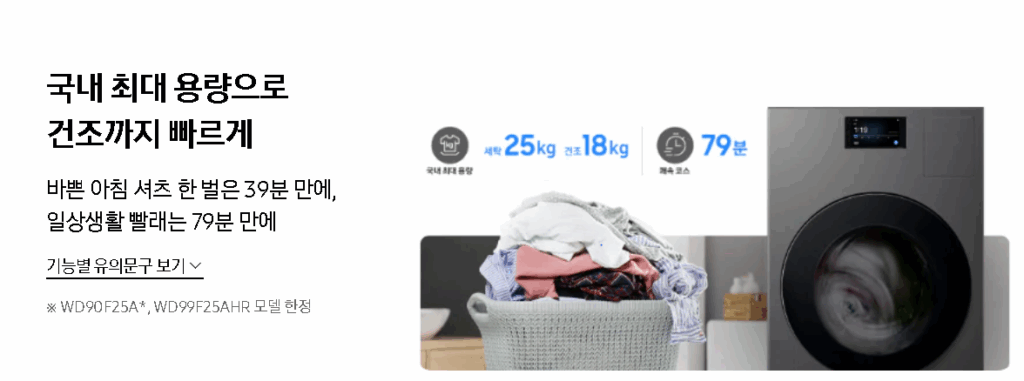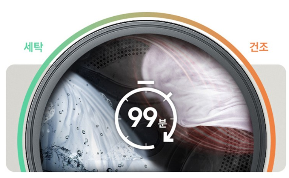 - 세탁이 끝나면 바로 건조로 넘어가는 ‘원스톱 방식’이라 바쁜 현대인에게 딱 맞습니다.