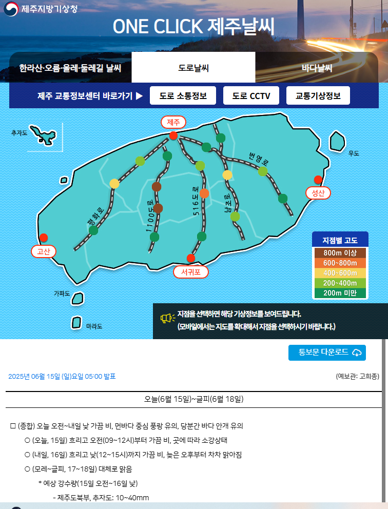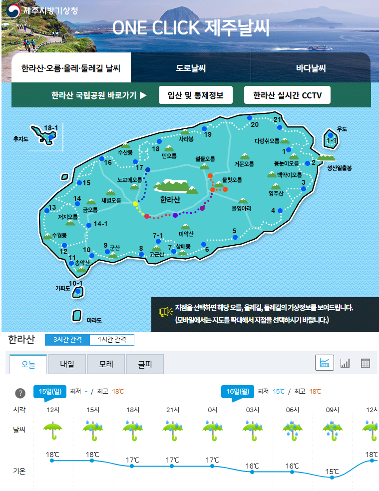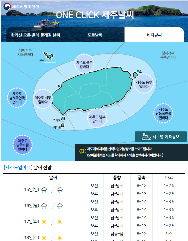 제주지방기상청 홈페이지에 들어가면 여행과 관련된 기상정보가 다양하게 있어요