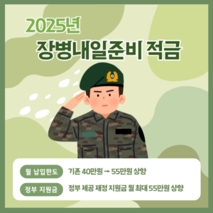 군 복무 중인 장병들에게 자산 형성의 기회를 제공하는 장병내일준비적금이 2025년부터 대폭 개선됩니다. 이번 개편으로 인해 군 복무 중 목돈 마련이 더욱 쉬워질 전망입니다. 특히 월 납입 한도 증액, 정부 지원금 확대, 병사 월급 인상 등의 혜택이 추가되어 실질적인 재정적 도움을 받을 수 있습니다.