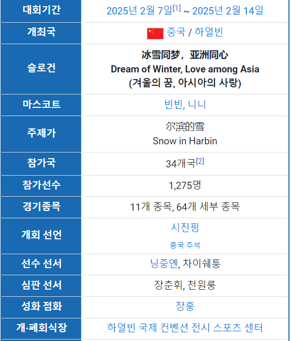 📅 2025 하얼빈 동계아시안게임 대회 일정