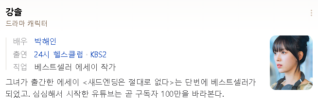 | 직업 | 작가 (팔로워 100만 SNS 인플루언서) |
