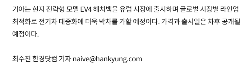 EV4의 출시일은 단순한 전기차 모델의 출시에 그치지 않으며, 전 세계 전기차 산업에 큰 영향을 미칠 것으로 예상됩니다. EV4는 기존 내연기관 차량들과 경쟁하면서도 전기차의 장점을 극대화한 모델로, 친환경 소비를 선호하는 소비자들 사이에서 큰 인기를 끌 것입니다. 이는 전기차 시장의 성장을 더욱 가속화시킬 중요한 모델로 평가받고 있습니다.