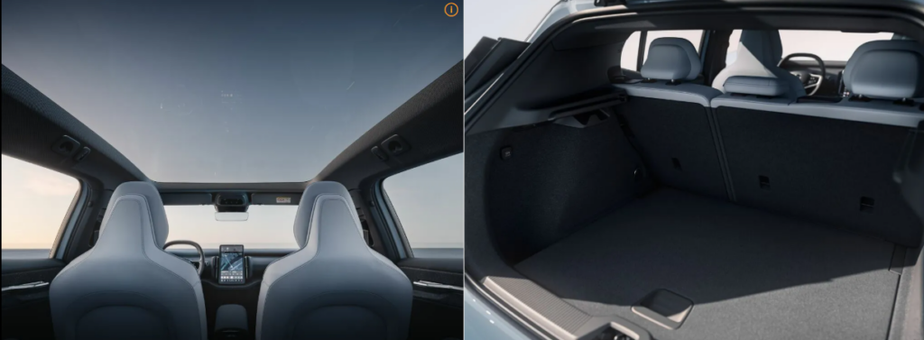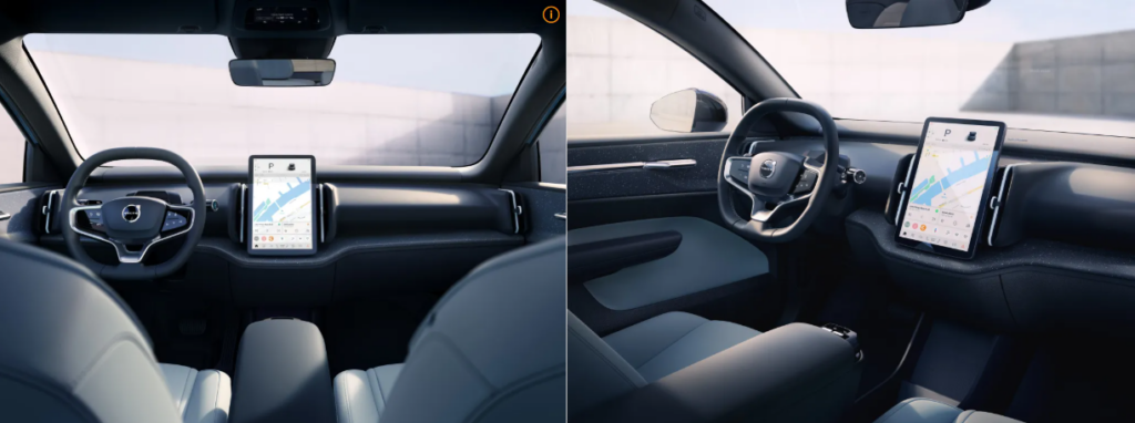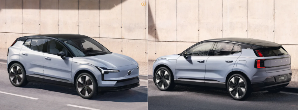 EX30은 볼보 고유의 세련된 스타일을 유지하면서도, 현대적인 감각을 가미한 디자인을 자랑합니다. LED 헤드램프, 블랙 투톤 컬러의 사이드 미러와 루프는 스포티한 느낌을 강조하며, 실내는 미니멀한 디자인 속에서도 기능성을 고려해 설계되었습니다.