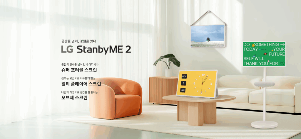 LG 스탠바이미2는 거실을 넘어 침실, 주방, 야외까지