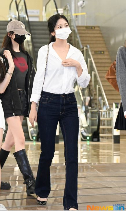 1️⃣ 안유진의 부츠컷 하이웨이스트 청바지